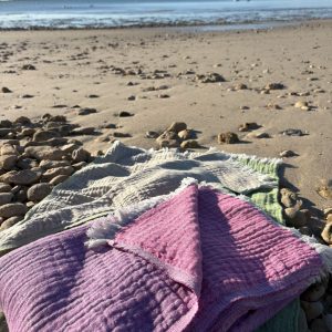 Depuis plus de 18 ans, nous partageons avec vous notre passion pour la Fouta. Inspirés par des coloris naturels et tendance, nous créons des modèles originaux de foutas, offrant une large palette de couleurs et de designs uniques. La Fouta, originaire de Tunisie, est fabriquée en 100% coton ou parfois en lin. Elle est tissée de manière traditionnelle et artisanale, soit en tissage plat, soit en nid d’abeille.